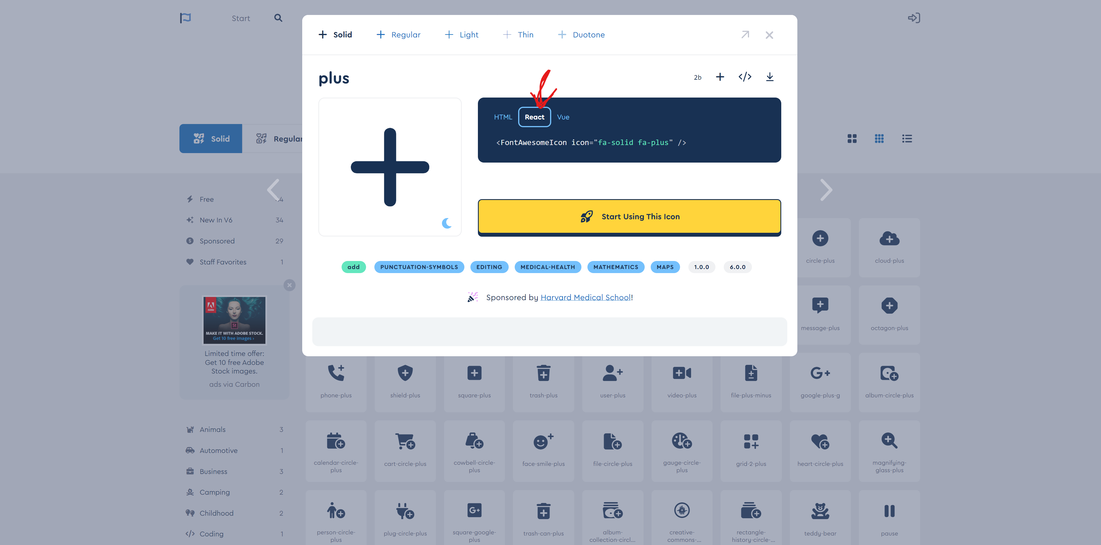 먼저 fontawesome 사이트에서 사용할 아이콘을 찾아보자.